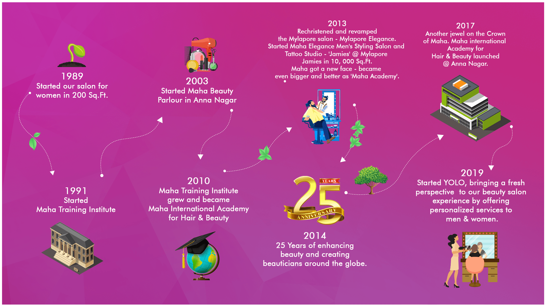 Mrs. K. Mahalakshmi Kamalakannan - Founder & Director of our group is the D/o Late.Thiru Isari Velan who was a Cine Artist & also a Deputy Minister in MGR’s Cabinet. She used to accompany her father for his film shootings and used to be fascinated with the art of makeup.This kindled the spark in her to embark on a course in the Beauty Industry.